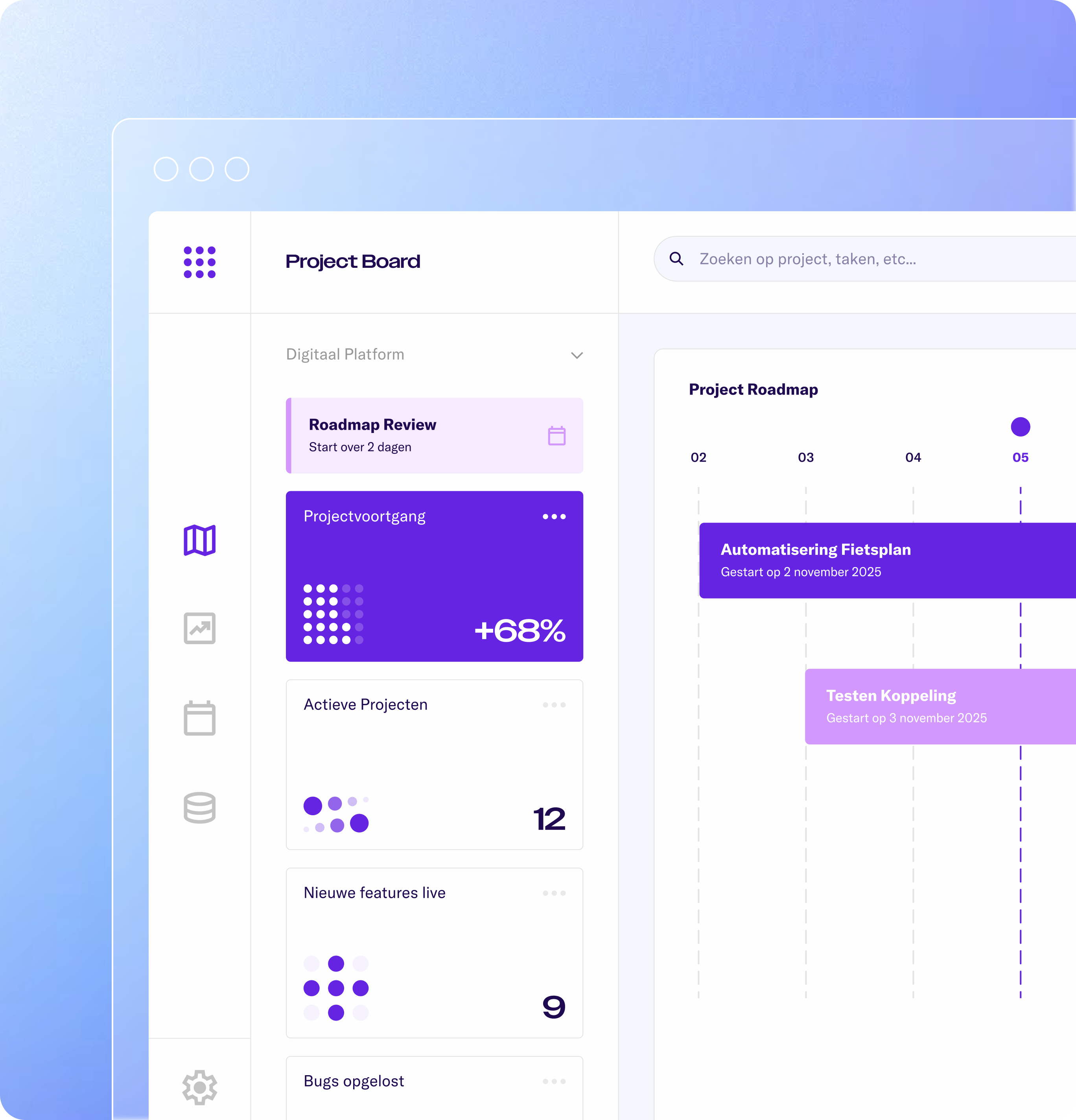 Informatie zit verspreid over tools, bestanden en hoofden. Het overzicht ontbreekt, waardoor grip op voortgang en capaciteit verdwijnt.